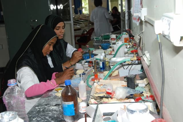 The Dental college is located in a constructed area of 125900 sq.ft and a non-constructed area of 91900 sqft with state of the art infrastructure which has set high standards in terms of Dental Education and creates an environment for excellent student oriented, patient friendly environment with dedicated faculty in place. Currently the college is equipped with 285 latest electronic Dental chairs and has set up a well maintained laboratory with all the latest equipment. There are technology driven gallery type lecture halls with audio-visual and multimedia projection capabilities. There are spacious examination hall and seminar halls. The Library is spread in a huge area with good collection of books and National and International Journals with back volumes with an excellent E-Library facility to benefit the students. State of art preclinical labs equipped with patient simulations and Wi Fi enabled campus. There is a Dental education museum within the campus. The campus houses well ventilated spacious hostels for girls and boys separately with staff quarters. The playground in the sprawling campus is ideal for basketball, football, cricket and volleyball and other games. It is attached with the Khaja Banda Nawaz Institute of Medical Sciences for clinical practice