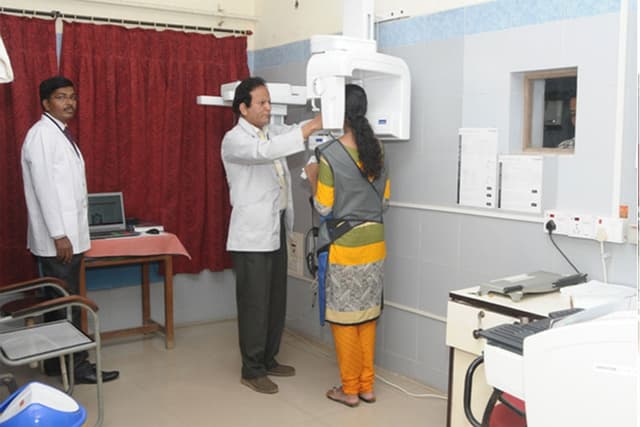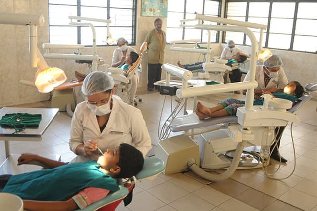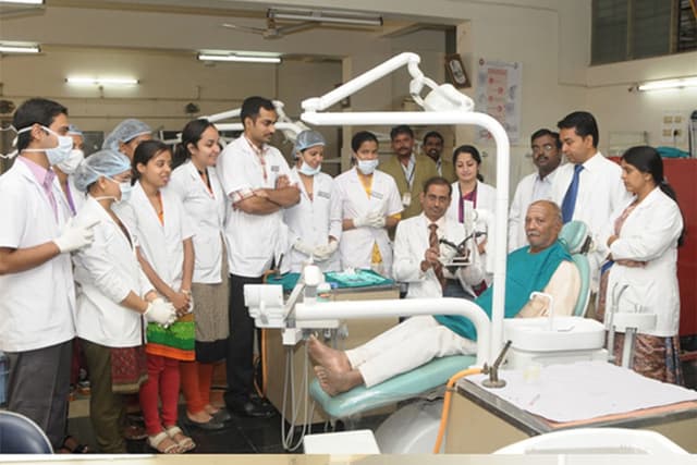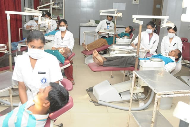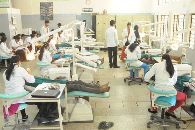 The Dental college is located in a sprawling lush green campus having a dedicated constructed area of 119662 sq.ft and a non-constructed area of 41862 sqft with state of the art infrastructure which has set high standards in terms of Dental Education and creates an environment for excellent student oriented, patient friendly environment with dedicated faculty in place. Currently the college is equipped with 332 latest electronic Dental chairs and has set up a well maintained laboratory with all the latest equipment. There are technology driven air conditioned gallery type lecture halls with a large greenboard and full audio-visual and multimedia projection capabilities. There are spacious examination hall with a seating capacity of 250 students at a time and seminar halls. The Library is spread in a huge area with good collection of books and National and International Journals with back volumes. There is an excellent E-Library facility as well to benefit the students. State of art preclinical labs equipped with patient simulations and Wi Fi enabled campus. There is a Dental education museum within the campus. The campus houses well ventilated spacious hostels for girls and boys separately with staff quarters. The playground in the sprawling campus is ideal for basketball, football, cricket and volleyball and other games. It is attached with the Bapuji Hospital and Research Centre for clinical practice.