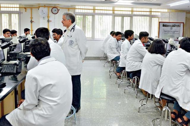 The Medical College and Hospital is located in a sprawling campus of over 105 acres with administrative block and self-contained blocks for the basic clinical departments and an excellent infrastructure. It has technology-infused Gallery type 4 Lecture halls in the college and 2 in the Hospital, Demonstration halls, Common rooms for Boys and Girls, Examination hall. It has latest Medical Skills Lab & Departmental museums. The well-equipped, modernized, and latest Technology-driven equipment make the Laboratory unique. Cafeteria and Recreation halls are amongst the best. The college has a very spacious auditorium, big play ground and an open-air theatre. The Central Library is located in the 2nd and 3rd floor of C wing which acquires huge volumes of books and National and International journals. The collection includes Textbooks, Atlases, Dictionaries, Directories, Encyclopaedias, Technical Reports and has an excellent facility of E- Library with separate Departmental libraries as well. There are facilities for Indoor and Outdoor Games and Sports. There are three hostels, two for girls and one for boys. The girls hostel are called GH1 and GH2. The boys hostel is called SBH (Senior Boys Hostel). In addition to this there is one hostel in the Rajindra Hospital also for Doctors/Interns/House surgeons.