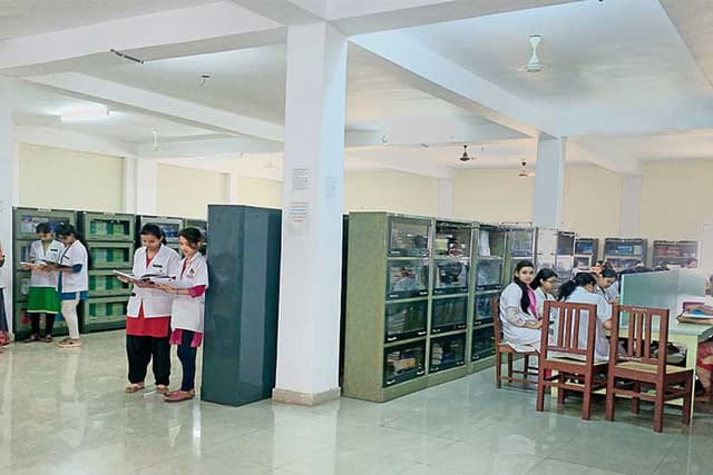 The Dental college is located in a constructed area of 206500 sq.ft and a non-constructed area of 173353 sqft with state of the art infrastructure which has set high standards in terms of Dental Education and creates an environment for excellent student oriented, patient friendly environment with dedicated faculty in place. Currently the college is equipped with 263 latest electronic Dental chairs and has set up a well maintained laboratory with all the latest equipment. There are technology driven air conditioned gallery type lecture halls with audio-visual and multimedia projection capabilities. There are spacious examination hall and seminar halls. The Library is spread in a huge area with good collection of books and National and International Journals with back volumes with an excellent E-Library facility to benefit the students. State of art preclinical labs equipped with patient simulations and Wi Fi enabled campus. There is a Dental education museum within the campus. The campus houses well ventilated spacious hostels for girls and boys separately with staff quarters. The playground in the sprawling campus is ideal for basketball, football, cricket and volleyball and other games. It is attached with the Sadar Hospital Hazaribag for clinical practice