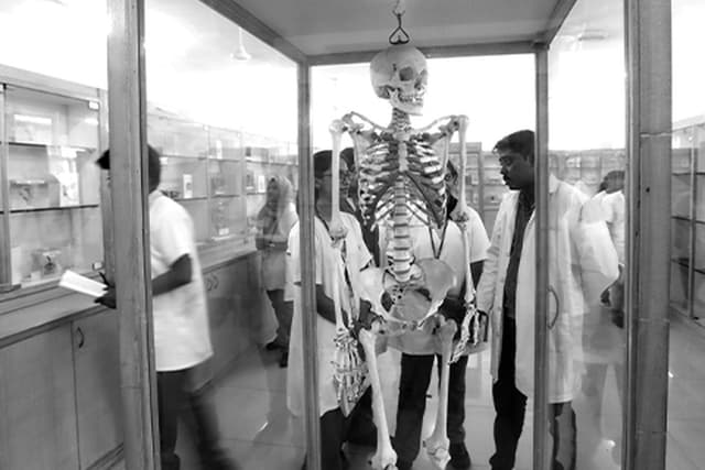 The College is spread in over an area of more than 100 acres which is located in the serene surroundings. It has very good infrastructure with spacious classrooms, Lecture halls to accommodate around 175, Examination rooms, Demonstration rooms, Seminar halls. There are Departmental museums and well-equipped Laboratories. The main Faculty Block present opposite the central park, has the departments of Anatomy, Forensic Medicine, Physiology, Pathology, Pharmacology, Community Medicine (with Tele-Medicine), Microbiology and Biochemistry with their respective laboratories. A large auditorium is located near the entrance which holds the annual cultural events, graduation ceremonies, medical education programmes etc. Separate hostels with good infrastructure and hygienic food with recreational facilities are available for boys and girls. Sports facilities like table-tennis, football cum cricket ground, volleyball, basketball and badminton courts are provided. A well-equipped co-operative store and a cafeteria are open during college hours within the campus. The college has very library facility with an excellent collection of medical books and journals, back volumes, Atlases, Dictionaries, Directories, Encyclopaedias, Technical Reports. There are separate Reading rooms and the E- library has good Internet facility. The college has pre-clinical, para-clinical and clinical disciplines.