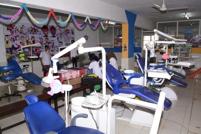 The Dental college is located in a constructed area of 72000 sq.ft and a non-constructed area of 7633sqft with state of the art infrastructure which has set high standards in terms of Dental Education and creates an environment for excellent student oriented, patient friendly environment with dedicated faculty in place. Currently the college is equipped with 125 latest electronic Dental chairs and has set up a well maintained laboratory with all the latest equipment. There are technology driven air conditioned gallery type lecture halls with a large greenboard and full audio-visual and multimedia projection capabilities. There are spacious examination hall and seminar halls. The Library is spread in a huge area with good collection of books and National and International Journals with back volumes. There is an excellent E-Library facility as well to benefit the students.State of art preclinical labs equipped with patient simulations and Wi Fi enabled campus. There is a Dental education museum within the campus. The campus houses well ventilated spacious hostels for girls and boys separately with staff quarters. The playground in the sprawling campus is ideal for basketball, football, cricket and volleyball and other games. It is attached with the Sambhram Hospital KGF for clinical practice.