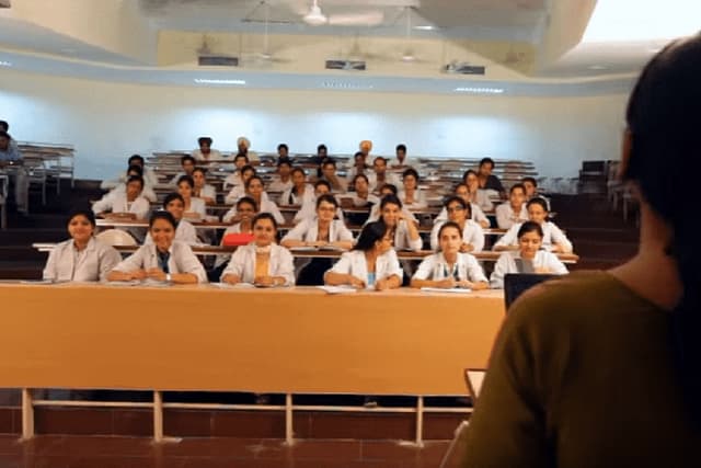There are five lecture halls (4 lecturer halls with 200 seating capacity gallery type, one with 350 seating, and one in hospital with 200 seating capacity ) equipped with all modern teaching audio-visual aids including Interactive boards, besides a 2 examination hall with a seating capacity of 250 candidates each. The Central Library has a good collection of books and journals. There are spacious reading rooms with separate reading areas for faculty and students and a computer section with an internet facility. E-Library facility is also available. The college has a fully air-conditioned library with an internet facility for the students. The College has separate hostels for girls and boys with round-the-clock security arrangements, each hostel has separate dining rooms, recreation rooms, and study rooms. The campus includes 14 hostels and six residential blocks. It has a sports complex with seven gyms, a swimming pool, and one game arena. The campus has two shopping centers with four banks, a post office, and various eating shops. Also on campus, there is an auditorium with a seating capacity of about 1500.