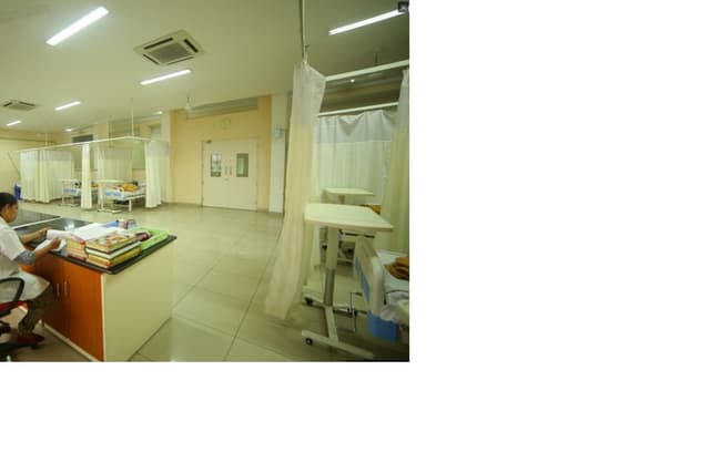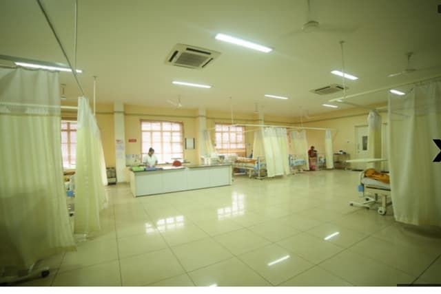 Nimra Institute of medical sciences (hospital) is operational with 350+ beds with all basic specialities like Medicine, Surgery, Obstetrics, Gynaecology, Orthopaedics, Opthalmology, Paediatrics, Dermatology, ENT, Psychiatry, Pulmonology, Physiotherapy etc. There are 04 Nos. of operation theatres to cater to the needs of various specialties. The out-patient departments are run by qualified specialists. The emergency medicine and trauma departments are working round the clock. It is adequately equipped to deal with all emergencies. The Intensive care unit is well equipped with monitors, ventilators and other supportive systems for giving necessary treatment to the critically ill-patients.