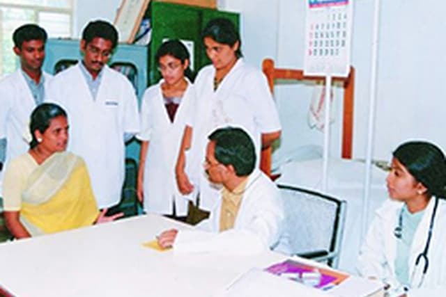 The Medical College and hospital is located amidst lush green field in a vast campus of 220 acres. There are 24 buildings with a built-in area of about 91,875 sq.mt , which includes furnished quarters for staffs. There are separate buildings for pre and para-clinical departments, library information center and the Hospital. The modern academic facilities includes spacious classrooms, Lecture halls, Examination Halls, Common Rooms, Demo rooms. Auditorium with a seating capacity of 1200 State of the art Departmental museums are in place and is completely equipped with modern laboratories. Gymnasium, Sports and Recreational corner for UG and PG students. Well-structured Library of 12600sqft area with huge collection of Books and Journals. Separate Hostel facilities for Boys and Girls within the campus. Canteen facility is available within the campus.