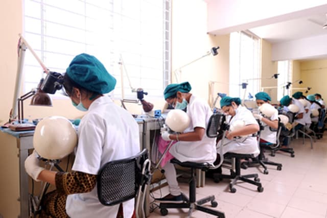 The Dental college is spread in a beautiful campus spread over 7 acres in the technology hub of Bangalore city and is located in a constructed area of 120000sq.ft and a non-constructed area of 150000 sqft with state of the art infrastructure which has set high standards in terms of Dental Education and creates an environment for excellent student oriented, patient friendly environment with dedicated faculty in place. Currently the college is equipped with 176 latest electronic Dental chairs and has set up a well maintained laboratory with all the latest equipment. There are technology driven air conditioned gallery type lecture halls with audio-visual and multimedia projection capabilities. There are spacious examination hall and seminar halls. The Library is spread in a huge area with good collection of books and National and International Journals with back volumes with an excellent E-Library facility to benefit the students. State of art preclinical labs equipped with patient simulations and Wi Fi enabled campus. There is a Dental education museum within the campus. The campus houses well ventilated spacious hostels for girls and boys separately with staff quarters. The playground in the sprawling campus is ideal for basketball, football, cricket and volleyball and other games. It is attached with the Government General Hospital, K R Puram for clinical practice.
