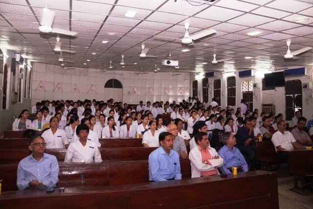 The campus Spreads over lush Green area of 28 acres which houses main medical college building which occupies a 6 storied building with a built up area of 20317.73 sq.mt, teaching hospital with a built up area of 65436.00 sq.mt, Hostel and Residential complex with a built up area of 23945.00 sq.mt. with Playground and offer Supportive facilities. The campus has the uniqueness of many state-of-the-art buildings, sprawling lawns, well maintained playgrounds along with supporting facilities. It has been planned, designed and constructed to address broader issues that relate to resource and energy conservation.